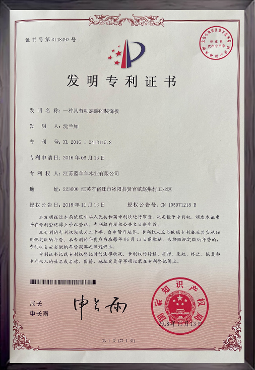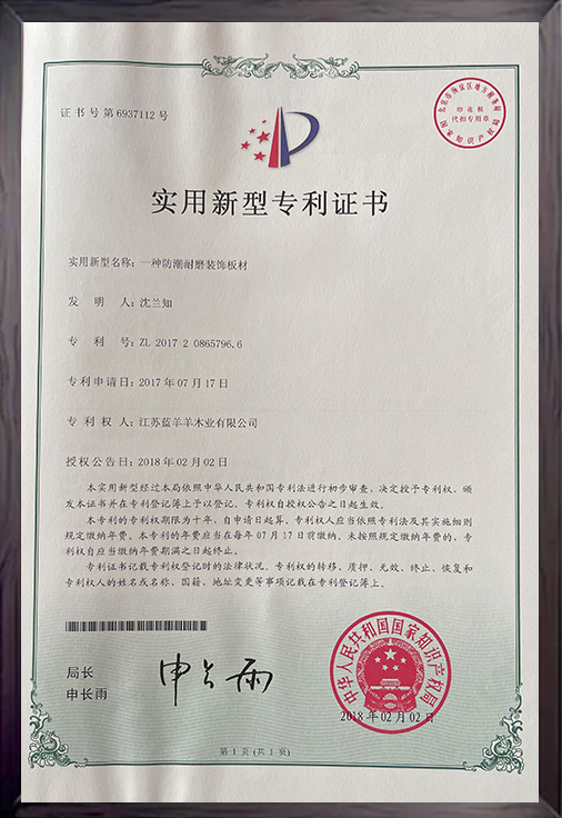 為了打造多元化市場,2014年,沈蘭知創建了江蘇藍羊羊裝飾材料有限公司,業務拓展至高檔防水建筑模板生產,“藍羊羊集團”初具雛形。征地一百多畝,建成廠房3萬平米,建設12條自動化生產線,日產模板2萬余張,專利技術超20項,品牌影響力日益增強。